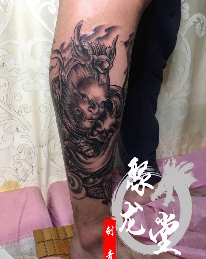 当前位置: 首页 >广东省惠州市纹身店-聚龙堂刺青纹身图案>猴哥纹身图片_成品腿部传统人物纹身图案