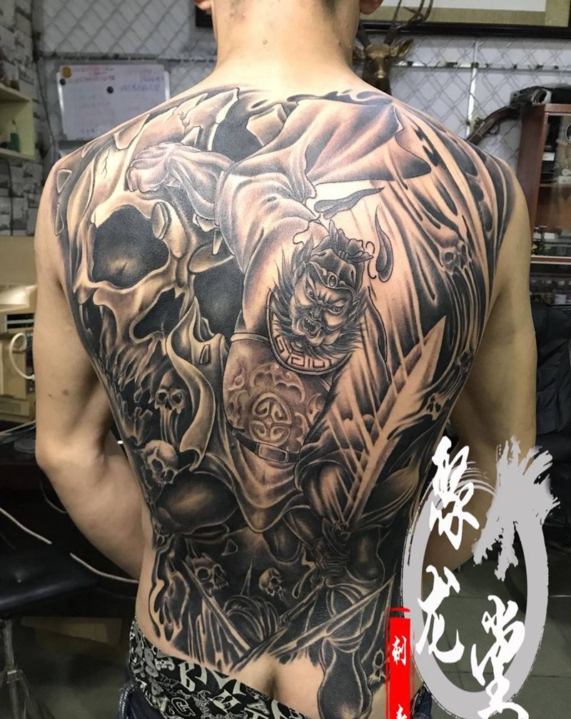 • H传统钟馗纹身 钟馗过肩纹身图案