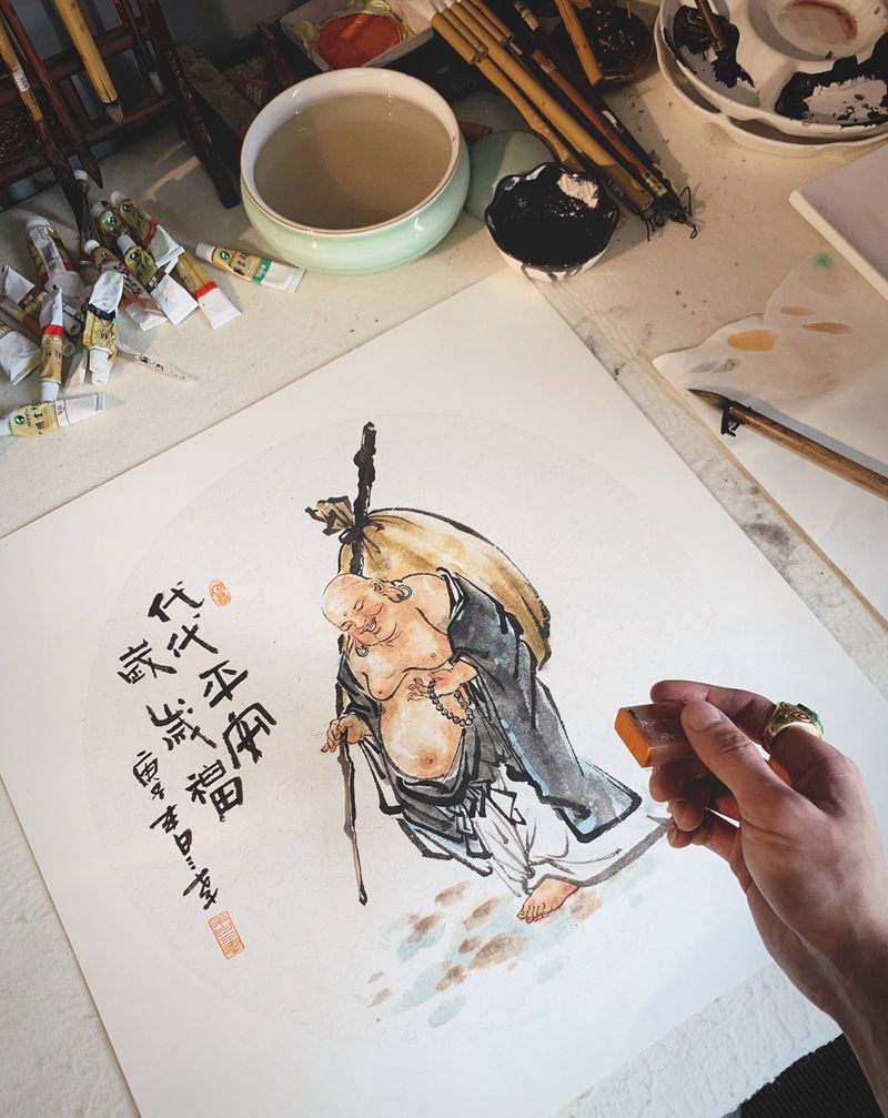 【布袋和尚·写意国画】纹身图片_写意国画纹身图案