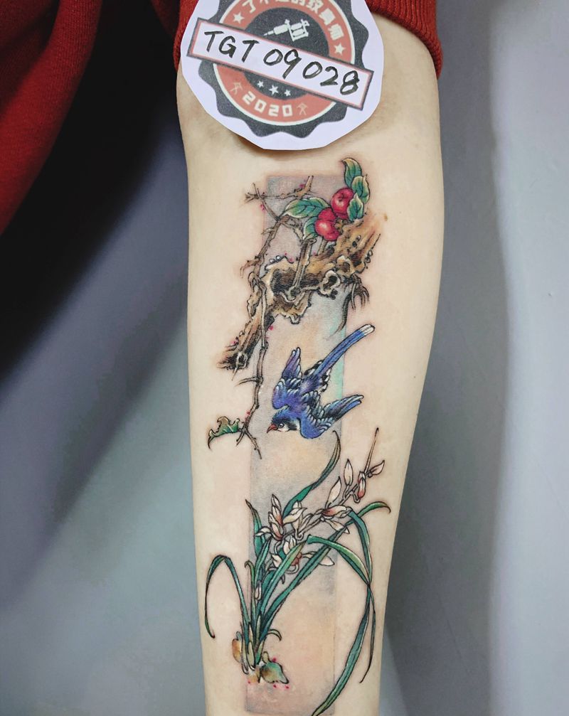 当前位置: 首页 >广东省汕尾市纹身店-丰翼轩刺青纹身图案>【见喜·小国画系列】纹身图片_手臂水彩水墨国画纹身图案