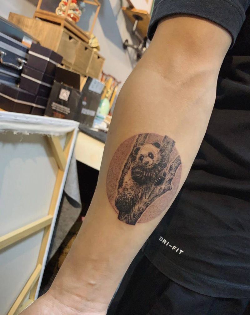 黑灰写实·熊猫纹身图片_手臂点刺欧美写实纹身图案