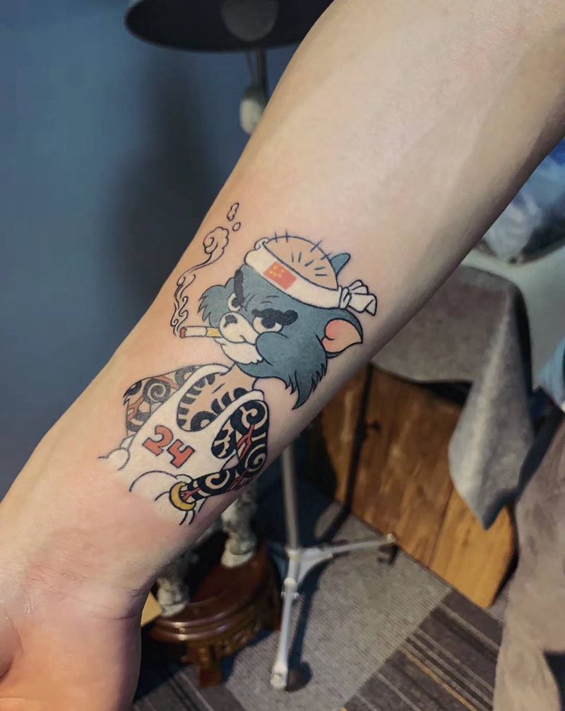 当前位置: 首页 >广东省汕尾市纹身店-丰翼轩刺青纹身图案>汤姆猫造型设计纹身图片_手臂新传统水彩纹身图案
