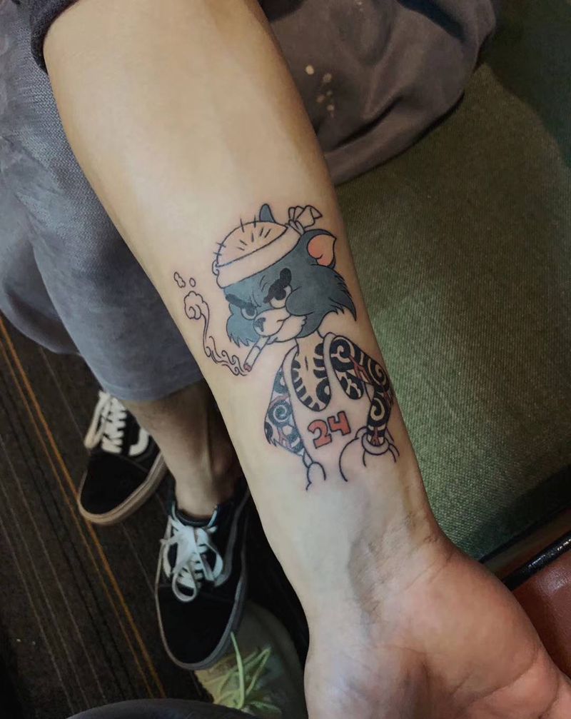 汤姆猫造型设计纹身图片_手臂新传统水彩纹身图案