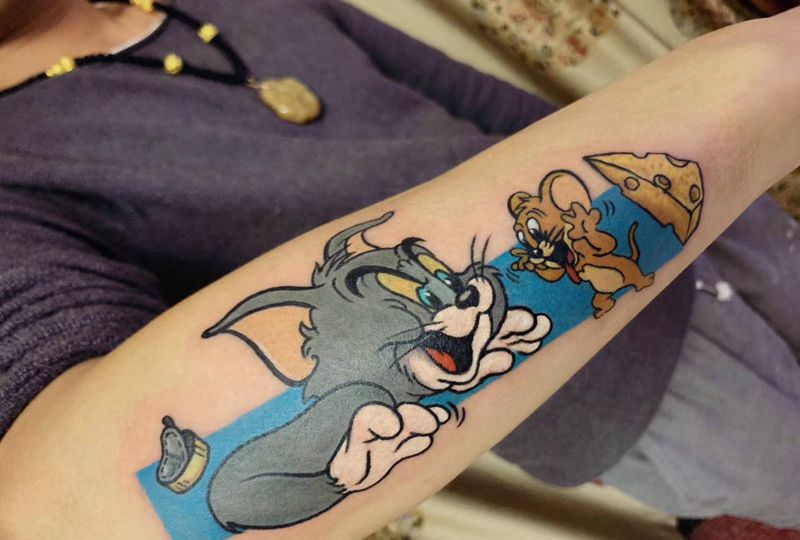 当前位置: 首页 >广东省汕尾市纹身店-丰翼轩刺青纹身图案>《汤姆和杰瑞》纹身图片_手臂New School水彩纹身图案