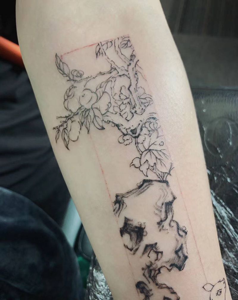 当前位置: 首页 >广东省汕尾市纹身店-丰翼轩刺青纹身图案>【国画纹身·一鹿喜柿】纹身图片_手臂新传统水墨国画纹身图案