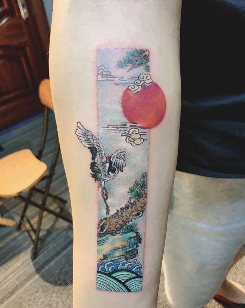 当前位置: 首页 >广东省汕尾市纹身店-丰翼轩刺青纹身图案>【国画纹身·鸿运当头】纹身图片_手臂新传统水墨国画纹身图案