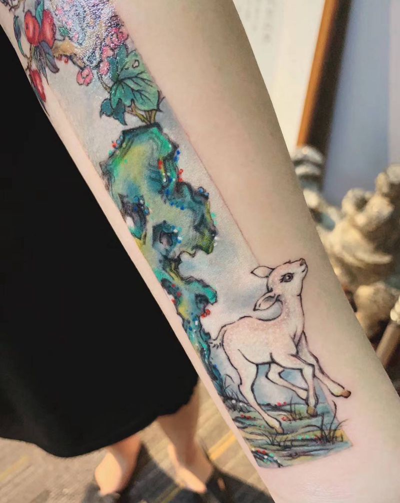 当前位置: 首页 >广东省汕尾市纹身店-丰翼轩刺青纹身图案>【国画纹身·鸿运当头】纹身图片_手臂新传统水墨国画纹身图案