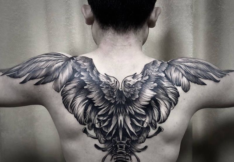黑灰满背纹身图案