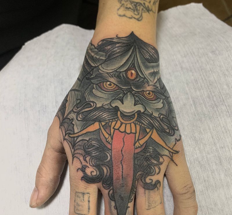 当前位置: 首页 >广东省惠州市纹身店-御天刺青纹身图案>撒旦纹身图片_手部New School纹身图案