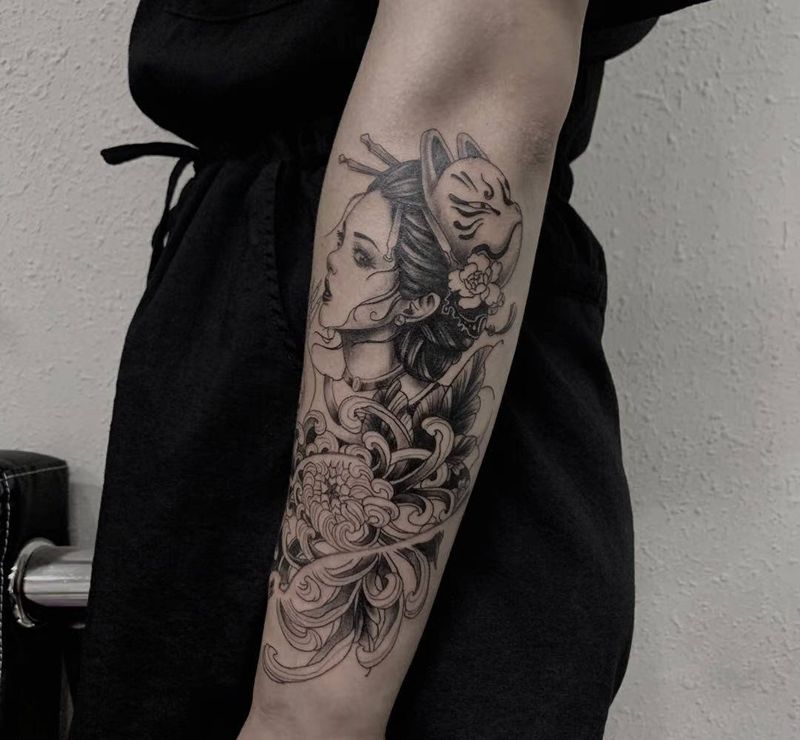 艺妓纹身图片_手臂新传统纹身图案