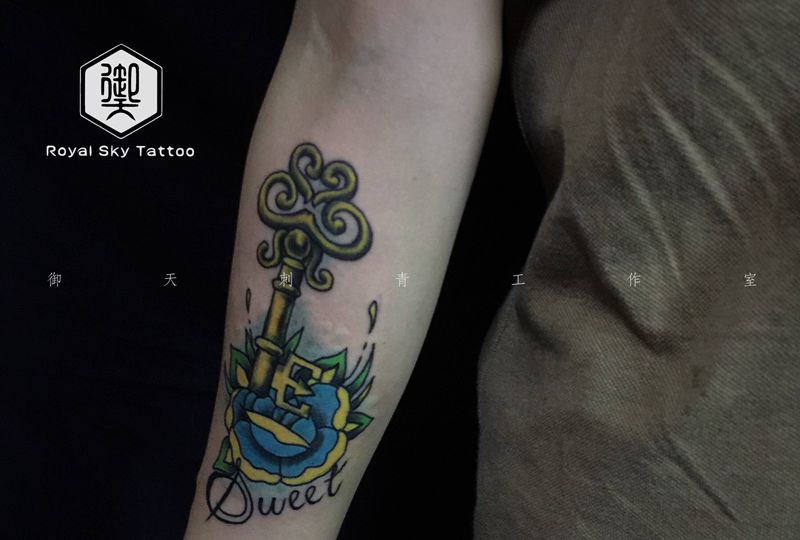 当前位置: 首页 >广东省惠州市纹身店-御天刺青纹身图案>情侣锁匙纹身图片_手臂Old School水彩情侣锁匙纹身图案