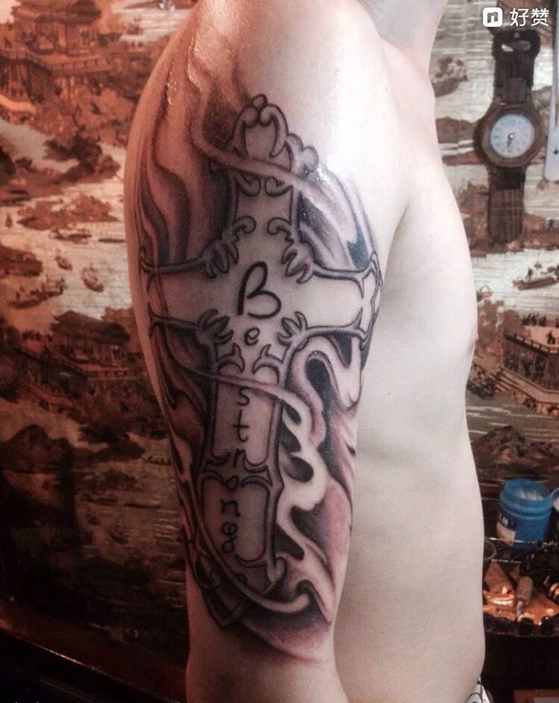 • 纹身吧推荐的披肩图腾半胛纹身图案作品展示