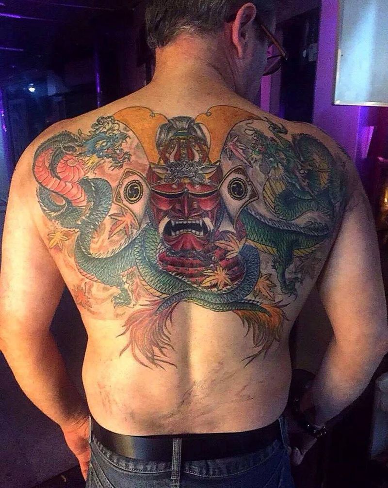 双龙武士纹身图片_背部传统鬼神纹身图案
