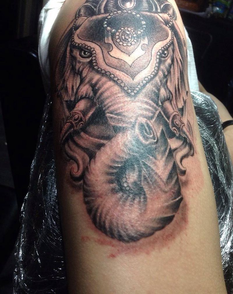 当前位置: 首页 >广东省惠州市纹身店-御天刺青纹身图案>象神纹身图片_成品手臂动物纹身图案