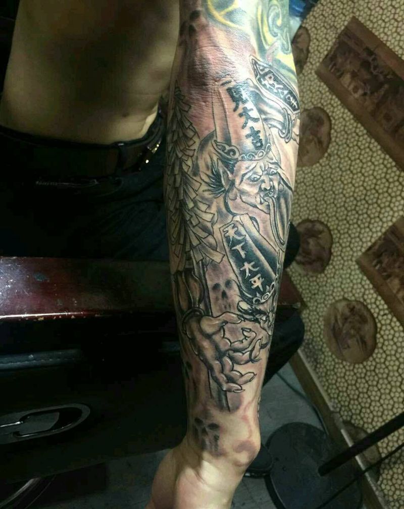 当前位置: 首页 >广东省惠州市纹身店-御天刺青纹身图案>黑白无常纹身图片_手臂传统人物鬼神宗教成品纹身图案