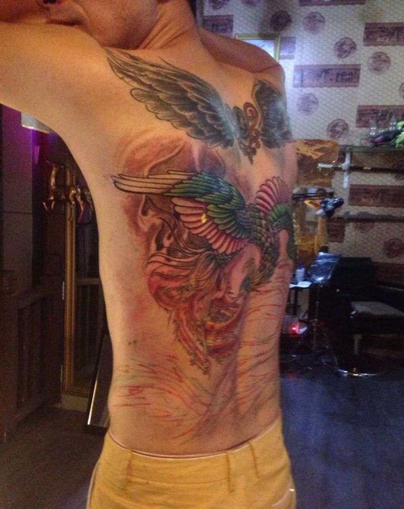 当前位置: 首页 >广东省惠州市纹身店-御天刺青纹身图案>凤凰纹身图片_背部传统动物纹身图案