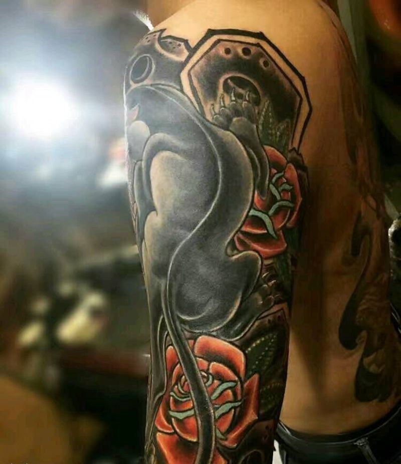 当前位置: 首页 >广东省惠州市纹身店-御天刺青纹身图案>黑豹纹身图片_手臂传统习俗动物植物静物原创成品纹身图案