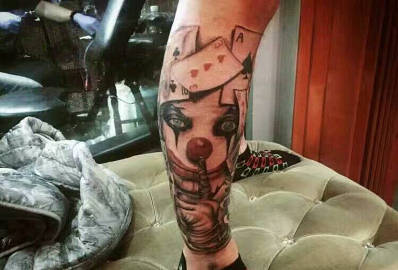 • T包小腿吹火男+阿多福纹身图片_腿部老传统新传统吹火男阿