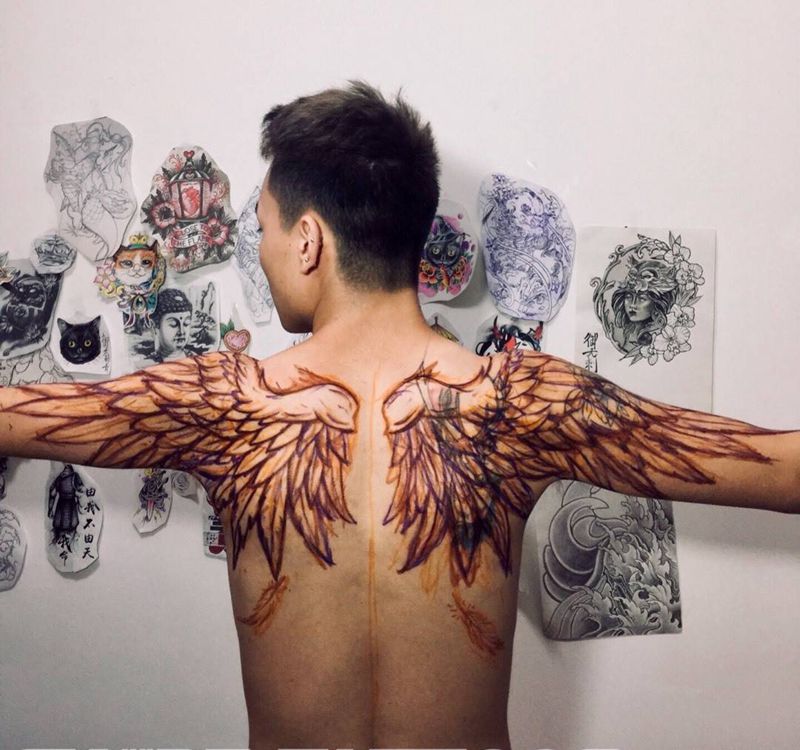 黑灰满背纹身图案