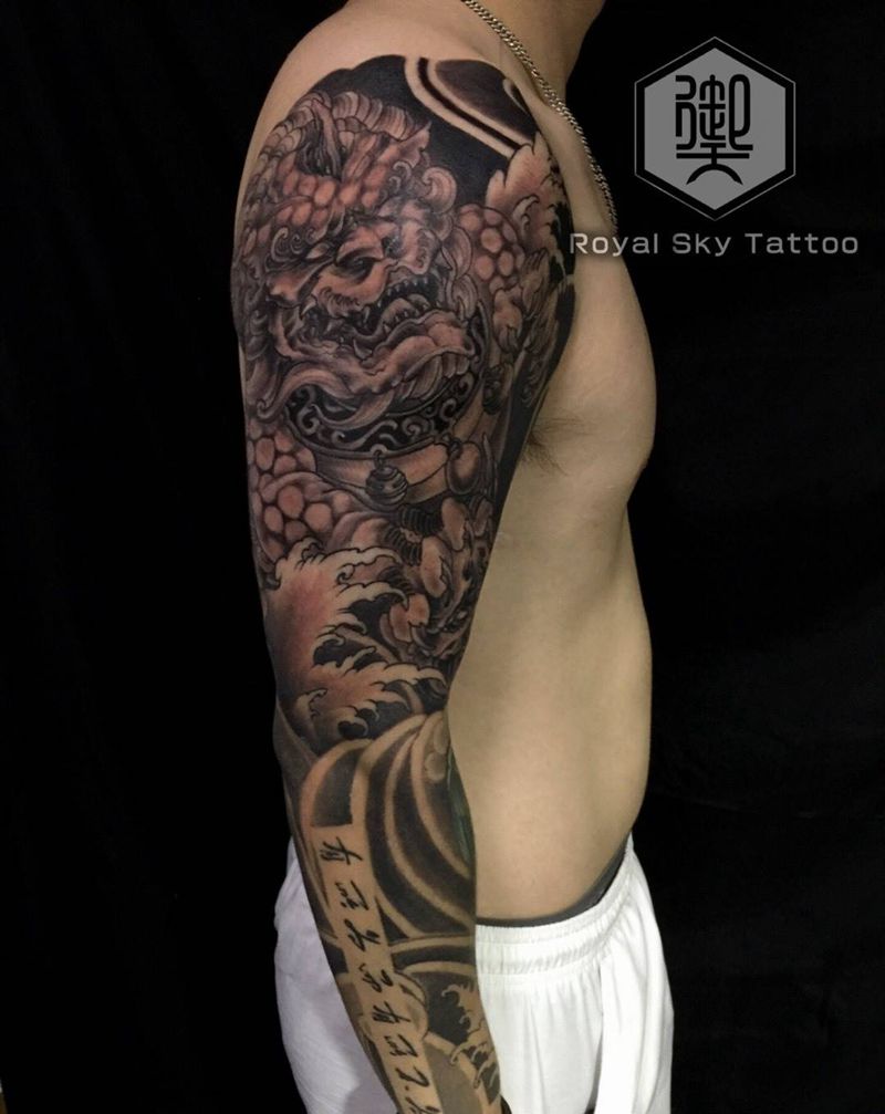 当前位置: 首页 >广东省惠州市纹身店-御天刺青纹身图案>唐狮纹身图片
