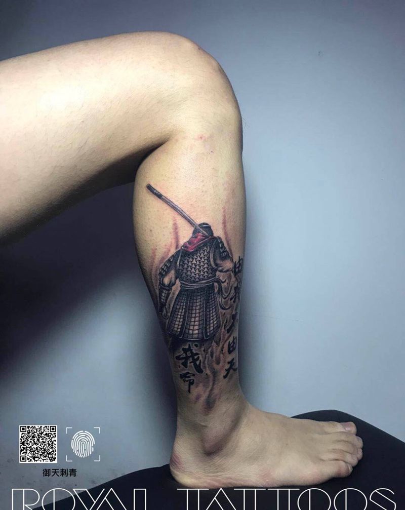 当前位置: 首页 >广东省惠州市纹身店-御天刺青纹身图案>至尊宝纹身图片_成品腿部传统人物鬼神纹身图案