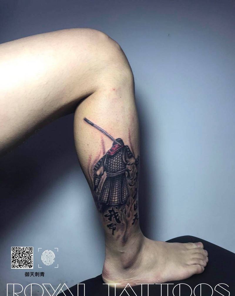 当前位置: 首页 >广东省惠州市纹身店-御天刺青纹身图案>至尊宝纹身图片_成品腿部传统人物鬼神纹身图案