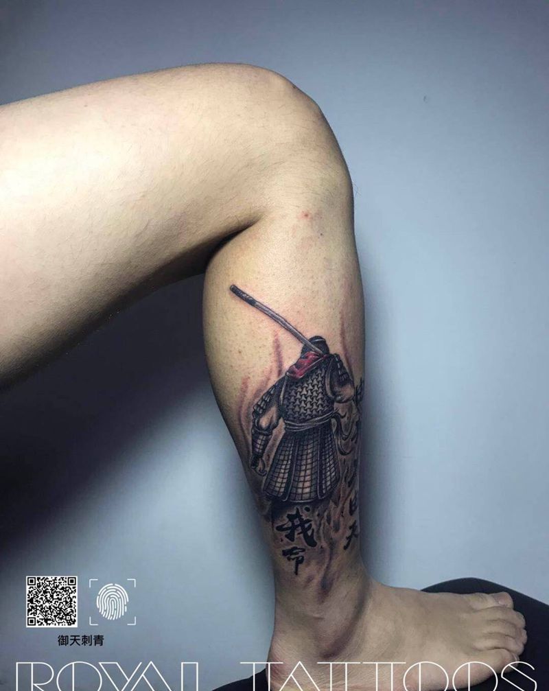 当前位置: 首页 >广东省惠州市纹身店-御天刺青纹身图案>至尊宝纹身图片_成品腿部传统人物鬼神纹身图案