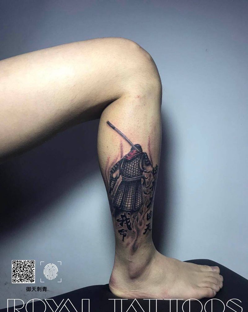 当前位置: 首页 >广东省惠州市纹身店-御天刺青纹身图案>至尊宝纹身图片_成品腿部传统人物鬼神纹身图案
