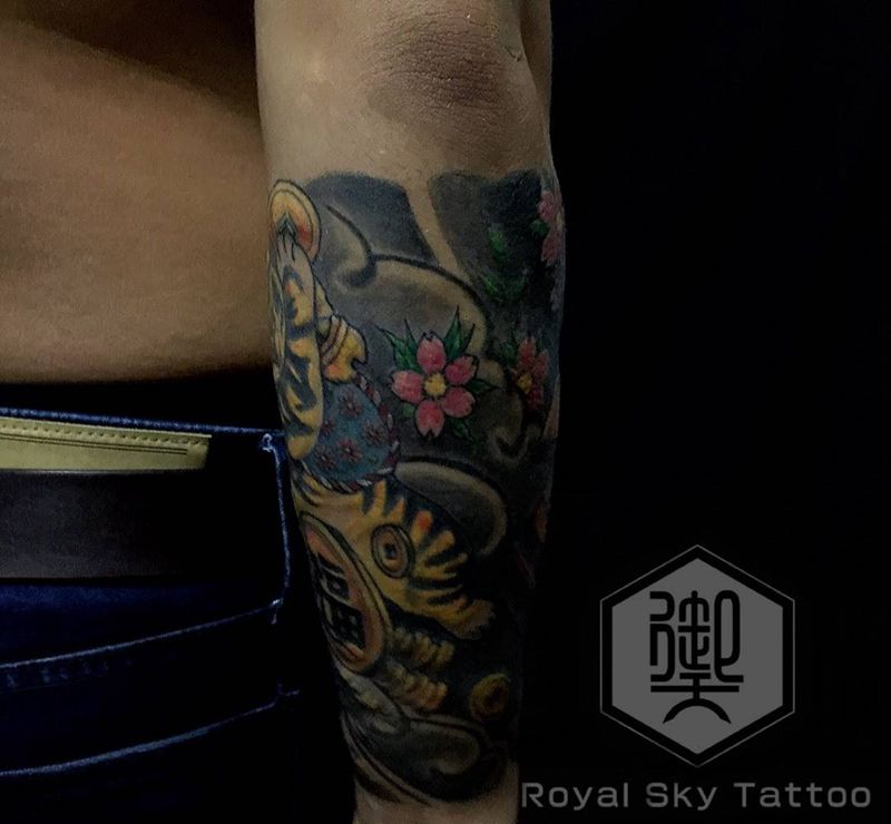 当前位置: 首页 >广东省惠州市纹身店-御天刺青纹身图案>罗汉加猫纹身图片