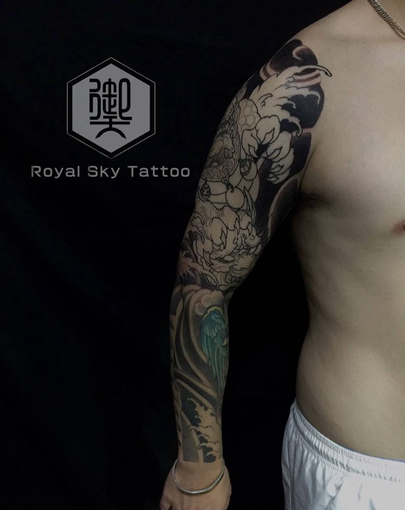 当前位置: 首页 >广东省惠州市纹身店-御天刺青纹身图案>唐狮纹身图片_手臂老传统纹身图案