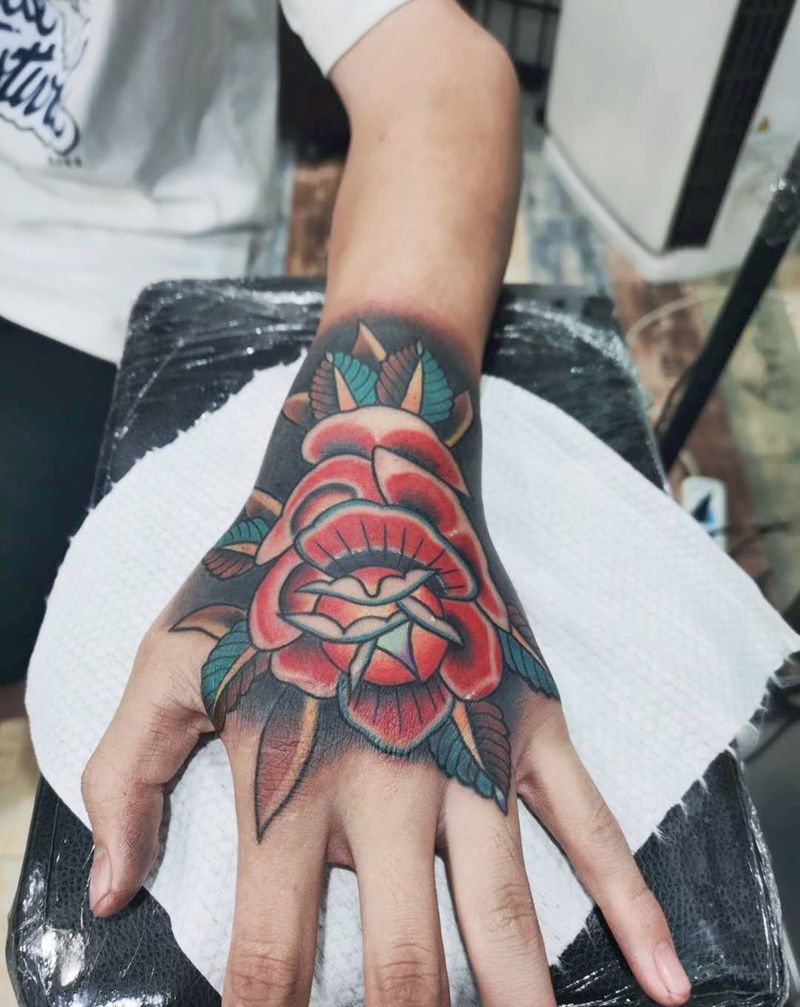 玫瑰纹身图片_手部Old School纹身图案