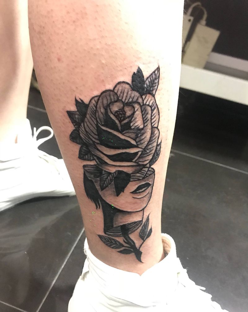 • T包小腿吹火男+阿多福纹身图片_腿部老传统新传统吹火男阿