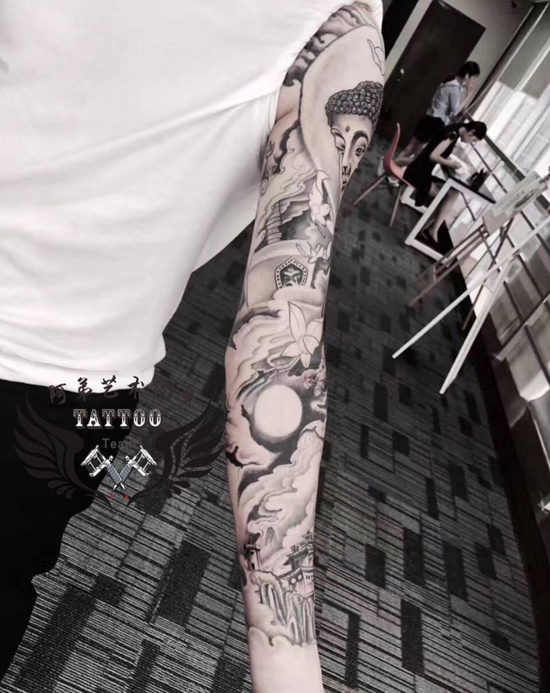 当前位置: 首页 >广东省惠州市纹身店-阿弟艺术纹身纹身图案>黑灰花臂纹身图片