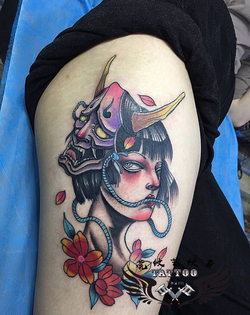 当前位置: 首页 >广东省惠州市纹身店-阿弟艺术纹身纹身图案>艺妓般若纹身图片_腿部新传统纹身图案