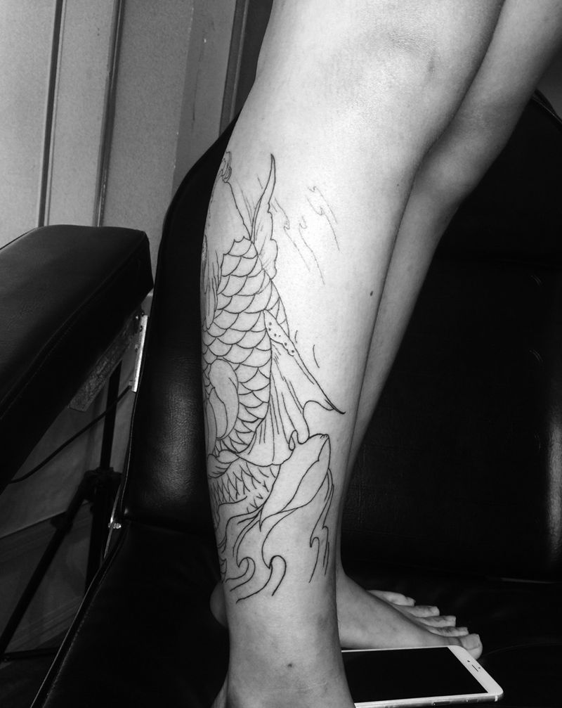 • T网红王老大花腿龙纹身图片_腿部新传统纹身图案