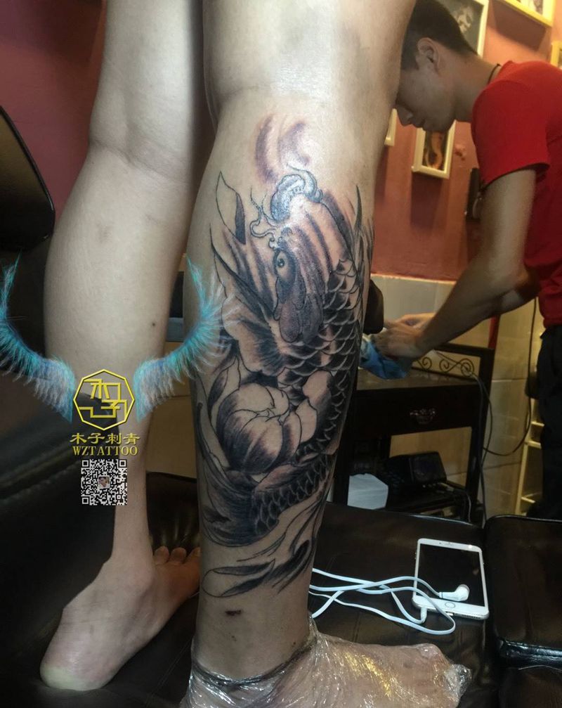 • T网红王老大花腿龙纹身图片_腿部新传统纹身图案