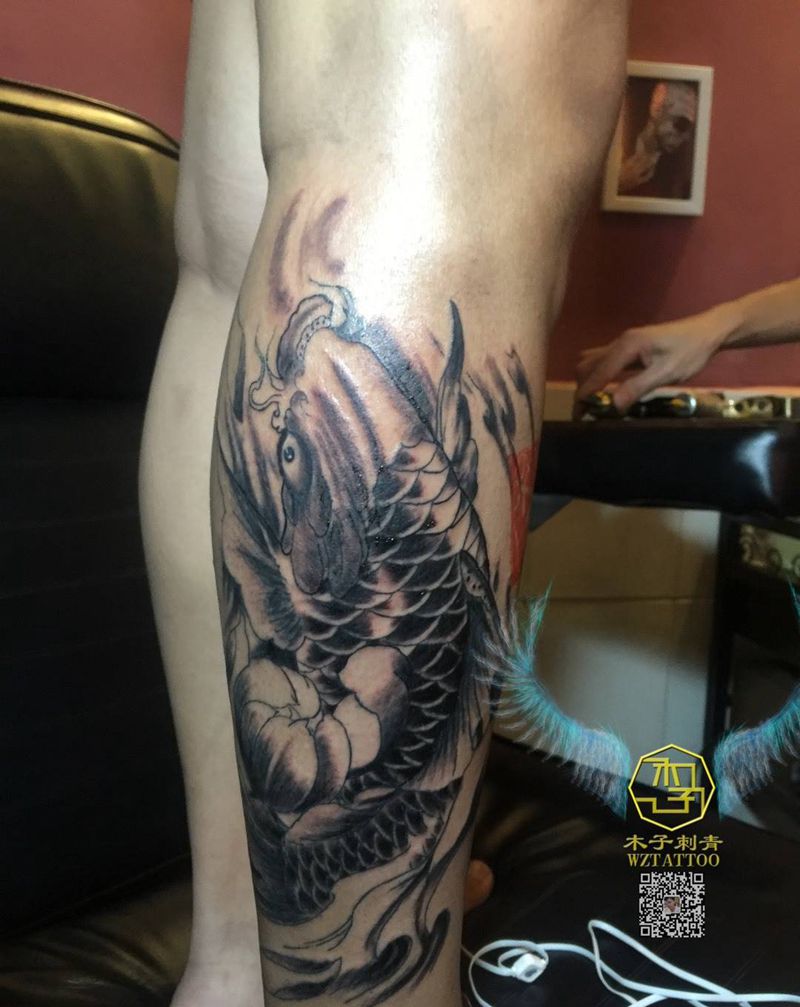 • T网红王老大花腿龙纹身图片_腿部新传统纹身图案