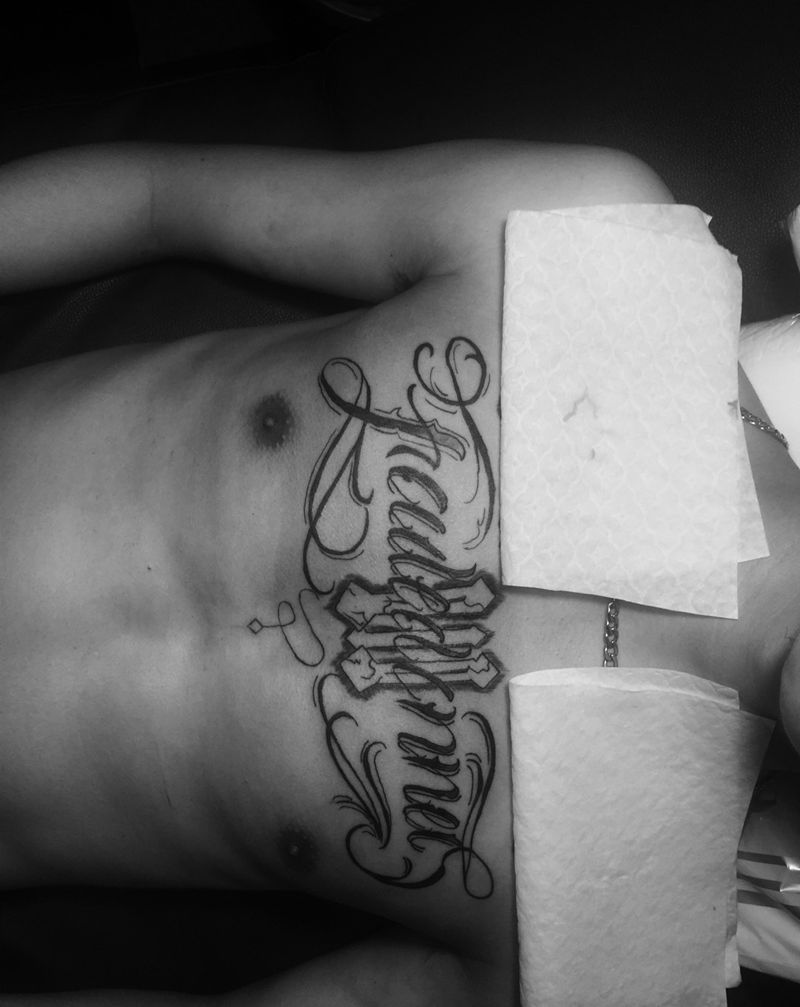 • T关于私处得爱!纹身图片_成品腹部清新字符图腾纹身图案