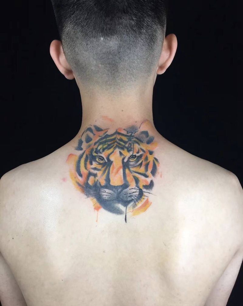 当前位置: 首页 >广东省汕尾市纹身店-木子纹身工作室纹身图案>彩虎头(盖图)纹身图片