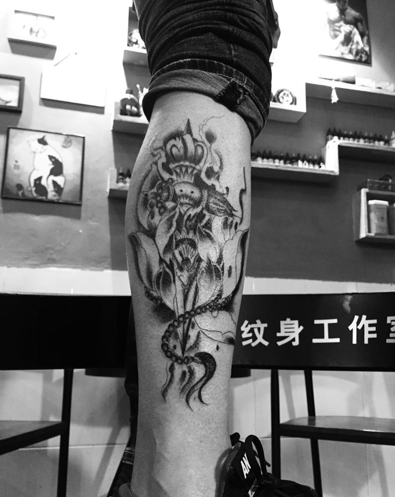 • T网红王老大花腿龙纹身图片_腿部新传统纹身图案