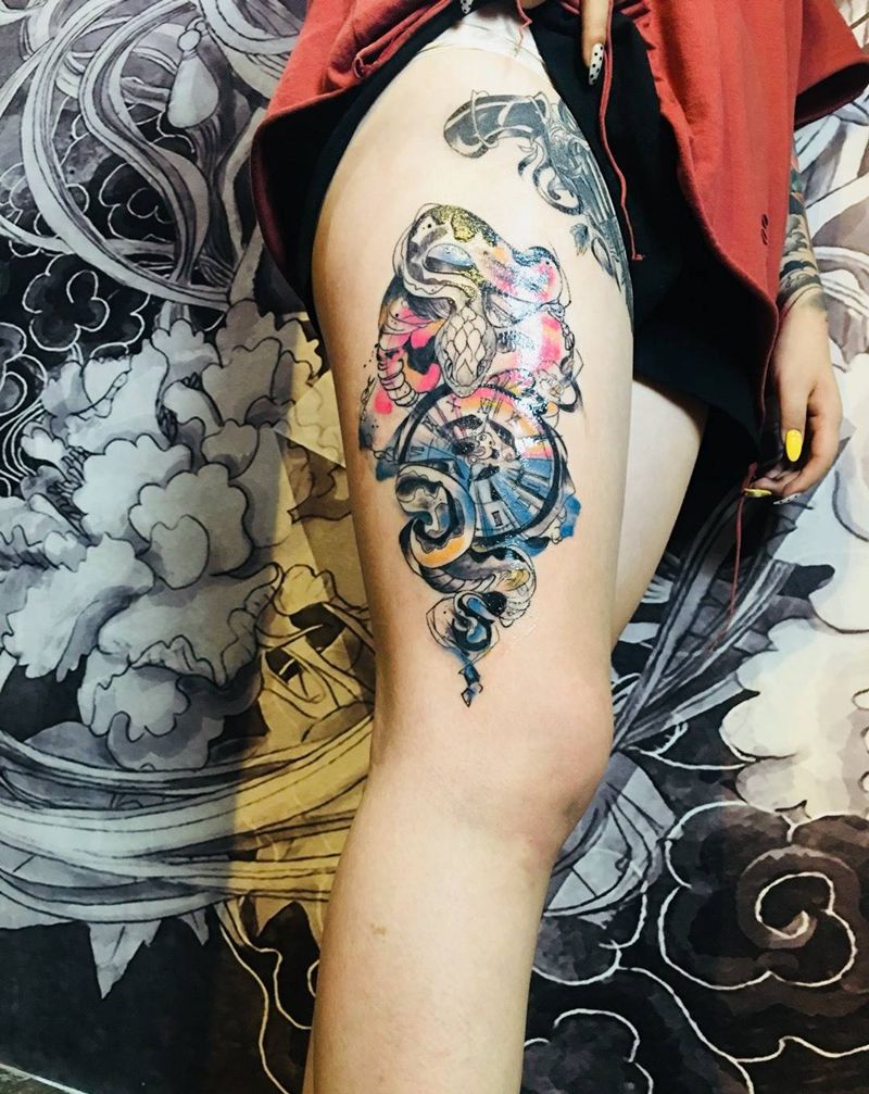 当前位置: 首页 >广东省汕尾市纹身店-木子纹身工作室纹身图案>蛇与钟表纹身图片