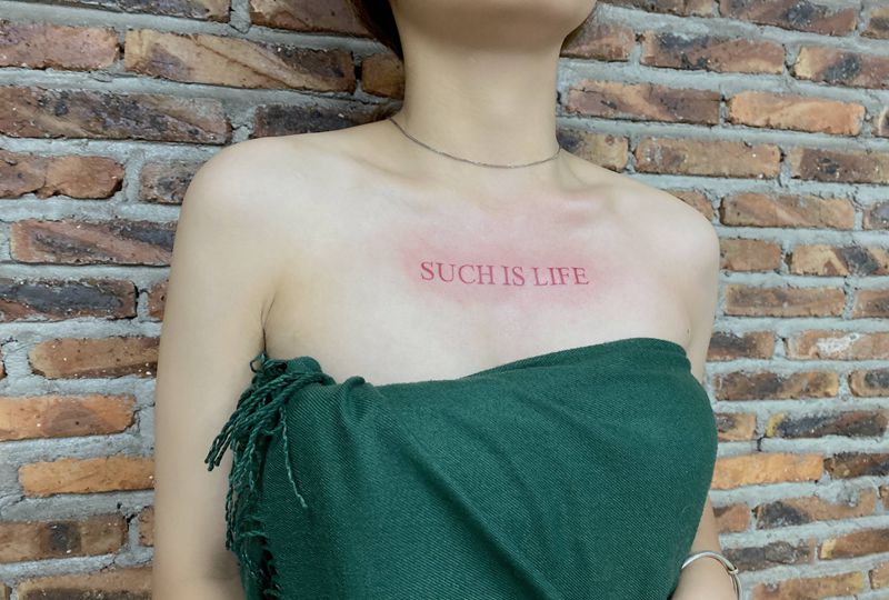 胸口小英文 红色纹身纹身图片_胸部小英文纹身图案