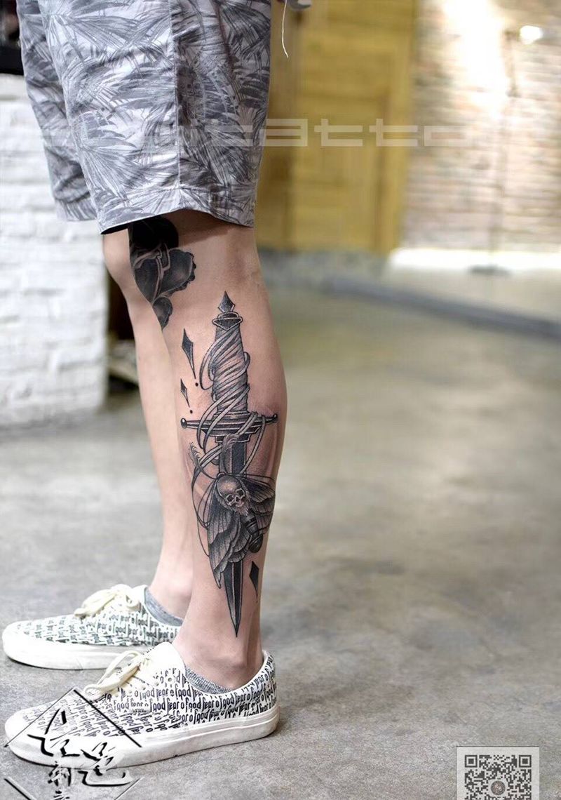 • T网红王老大花腿龙纹身图片_腿部新传统纹身图案