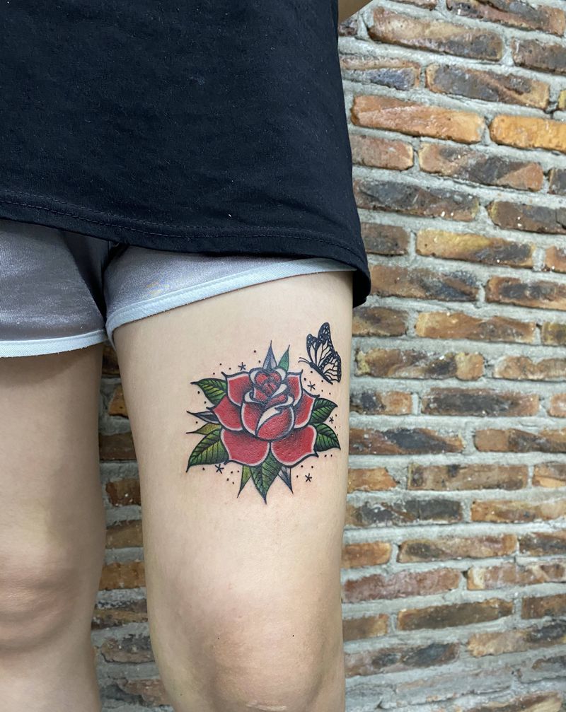 oldschool纹身 花纹身纹身图片_腿部Old School纹身图案