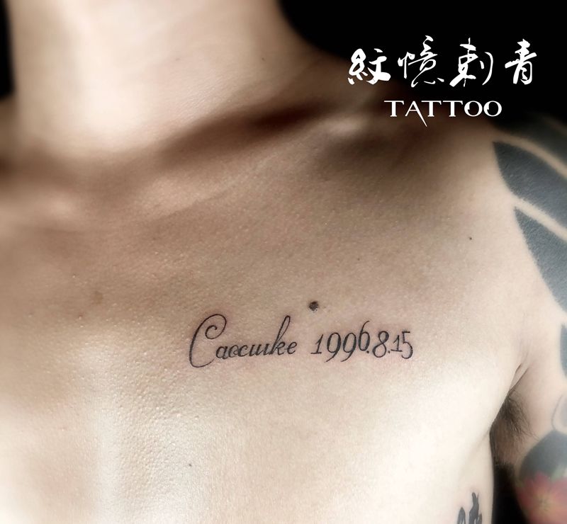 字母纹身图片_胸部花体字纹身图案