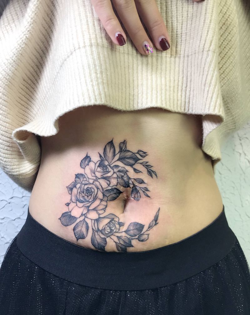 • T关于私处得爱!纹身图片_成品腹部清新字符图腾纹身图案