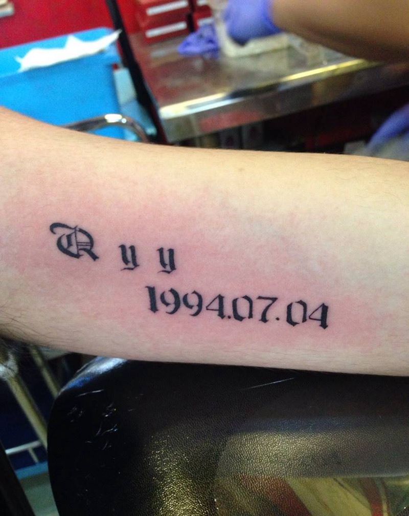 • T家庭图,一家四口生日纪念!纹身图片_手臂纹身图案