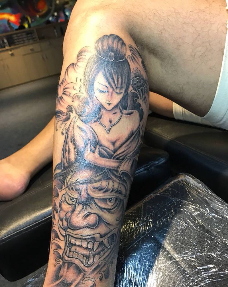 • T网红王老大花腿龙纹身图片_腿部新传统纹身图案