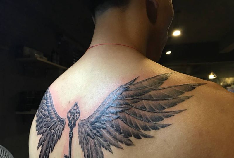 紋憶刺青出品,翅膀纹身图片