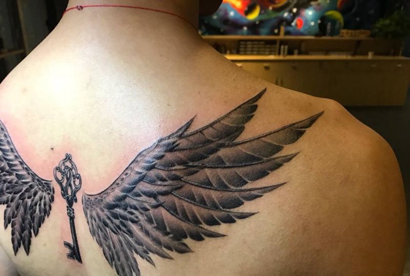 紋憶刺青出品,翅膀纹身图片